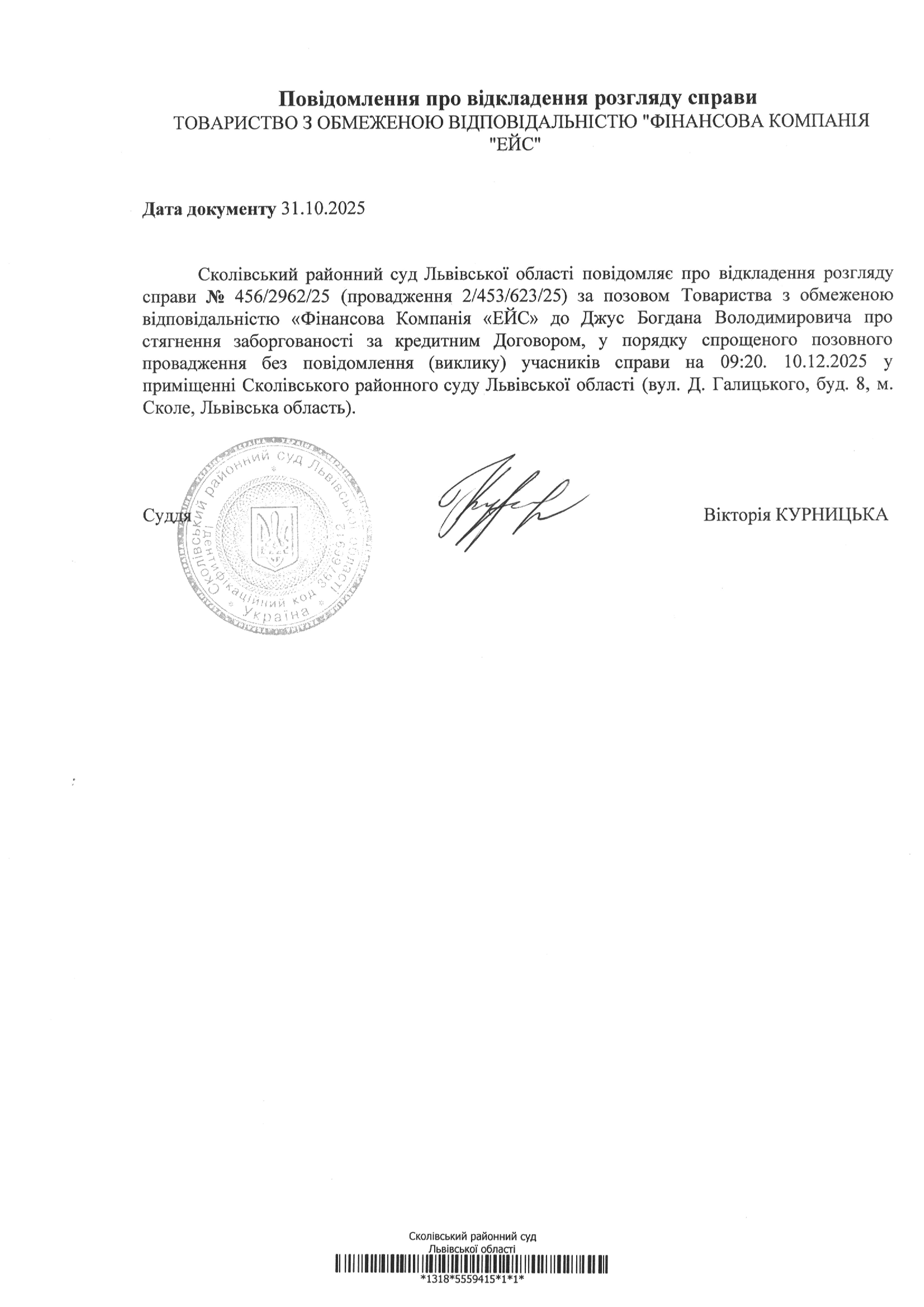 Оголошення про виклик до суду